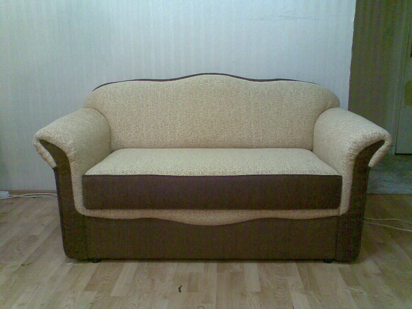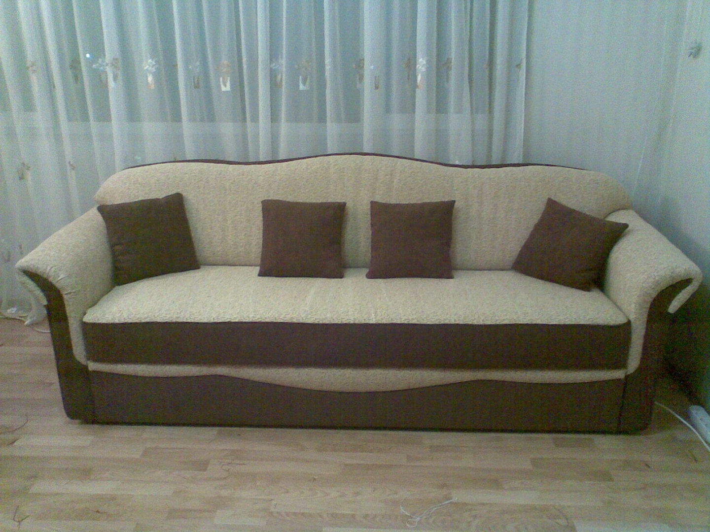 Tapiteria originala, rosie cu modele florale am schimbat-o cu una bicolora din material textil, o combinatie de maro inchis cu crem fiind alegerea clientului.