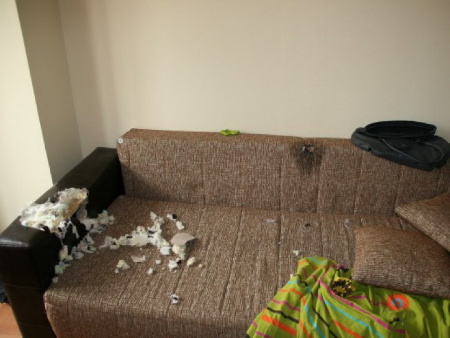 Cateii si pisicile sunt de multe ori raspunzatori pentru distrugerea canapelelor noastre, mai ales atunci cand sunt lasati mult timp singuri in apartament.