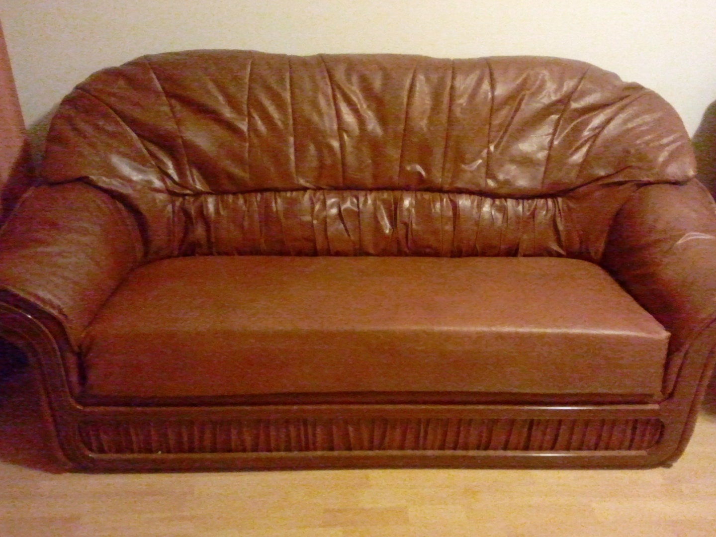 Principala problema la lucrarea de fata a fost sezutul canapelei si fotoliilor. Materialul original, imitatie de piele, nu a rezistat la uzura obisnuita.
