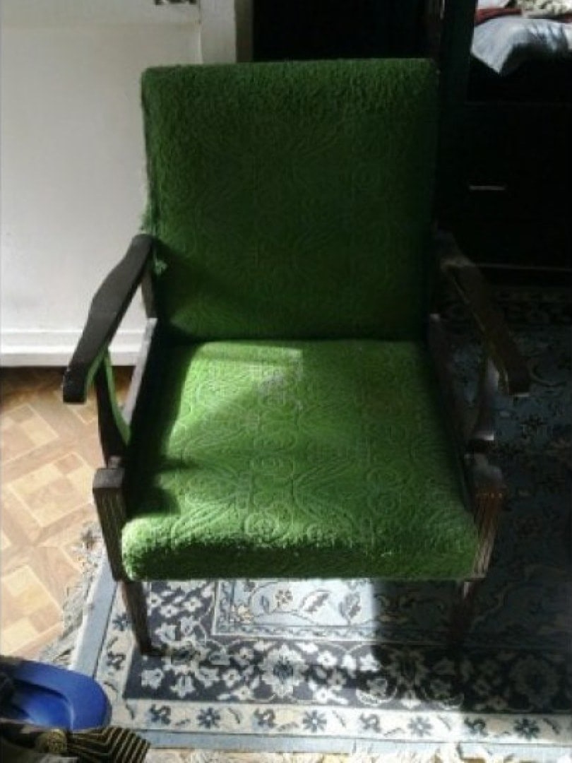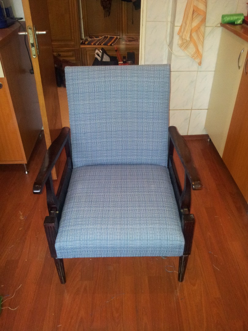 Un fotoliu vechi care prin retapitare si-a recapatat vitalitatea, clientul fiind multumit de rezultatul final.