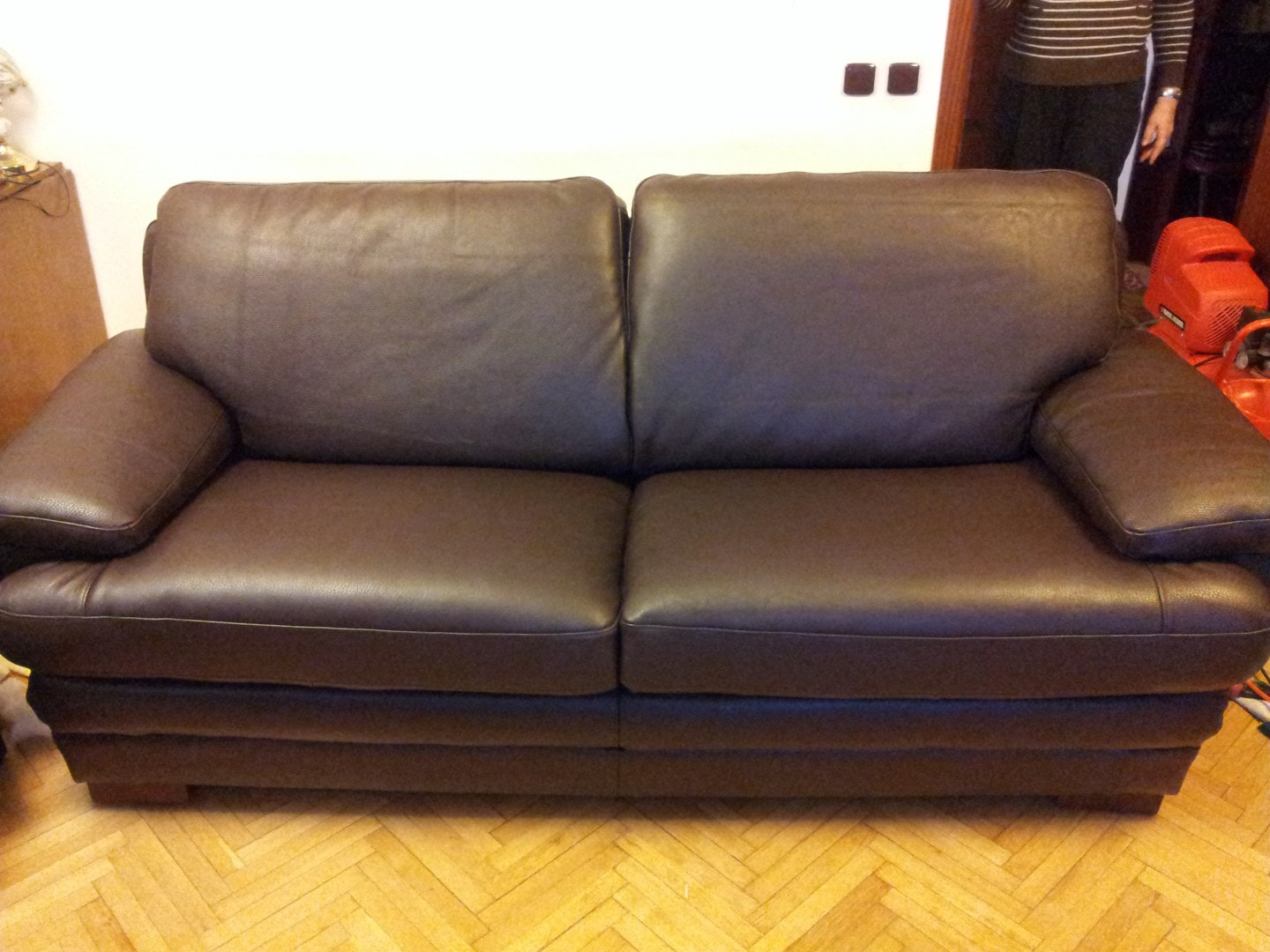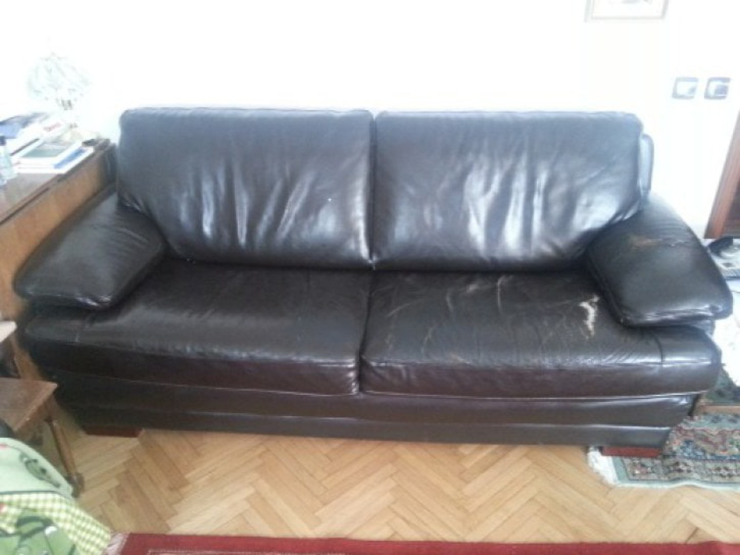 Pentru aceasta canapea din piele naturala s-a decis schimbarea tapiteriei, pielea veche fiind destul de deteriorata.