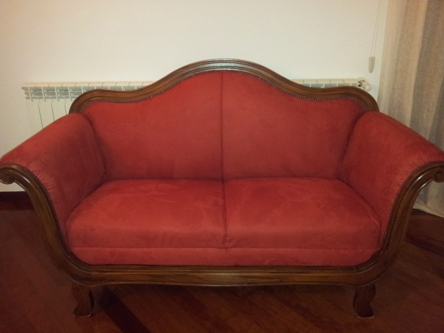 Materialul ales de client a fost un plus rosu, tapiteria noua fiind deosebita. Rezultatul final a fost foarte apreciat de catre clienta, aceasta declarandu-se incantata de noul aspect al micutei canapele de doua locuri.