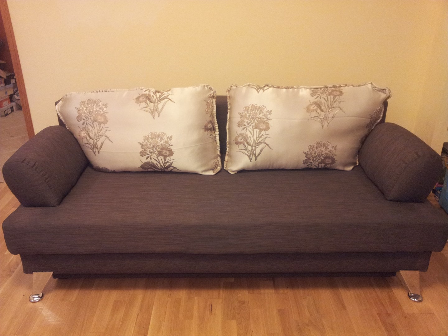 S-a obtinut o canapea practic noua, cu material textil modern si rezistent.